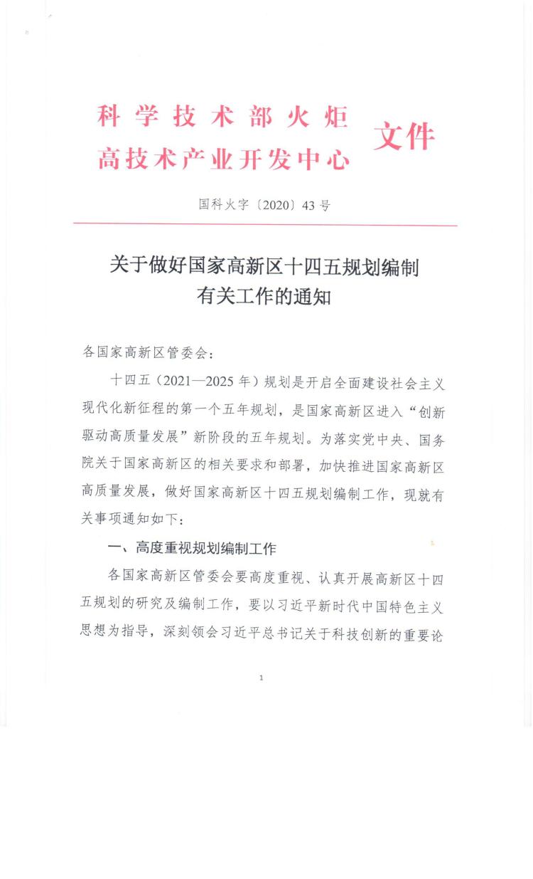 十四五(2021—2025年)規(guī)劃是開(kāi)啟全面建設(shè)社會(huì)主義現(xiàn)代化新征程的第一個(gè)五年規(guī)劃,是國(guó)家高新區(qū)進(jìn)入“創(chuàng)新驅(qū)動(dòng)高質(zhì)量發(fā)展”新階段的五年規(guī)劃。為落實(shí)黨中央、國(guó)務(wù)院關(guān)于國(guó)家高新區(qū)的相關(guān)要求和部署,加快推進(jìn)國(guó)家高新區(qū)高質(zhì)量發(fā)展,做好國(guó)家高新區(qū)十四五規(guī)劃編制工作,現(xiàn)就有關(guān)事項(xiàng)通知如下: