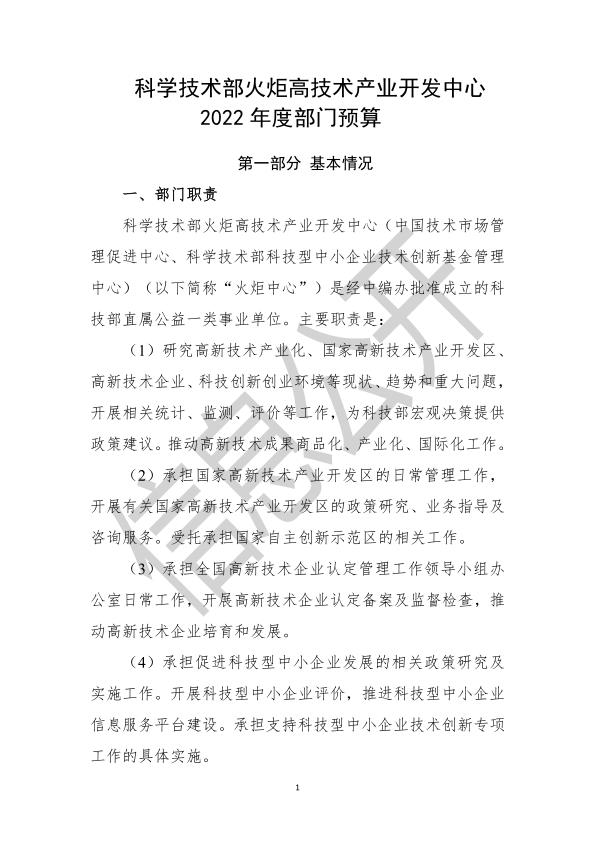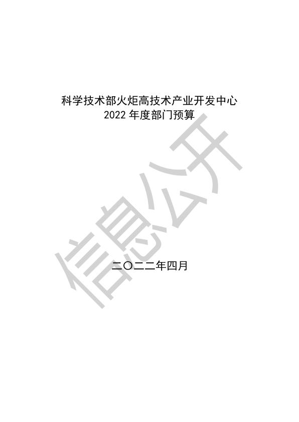科學技術部火炬高技術產(chǎn)業(yè)開發(fā)中心2022年度部門預算