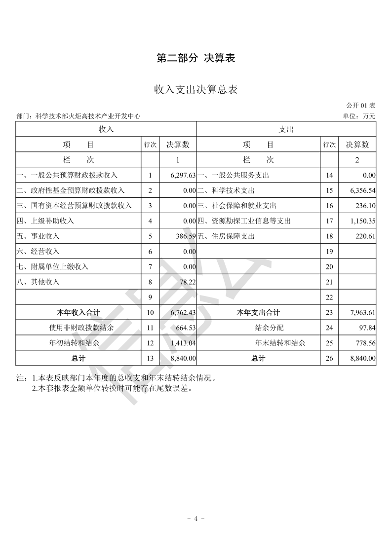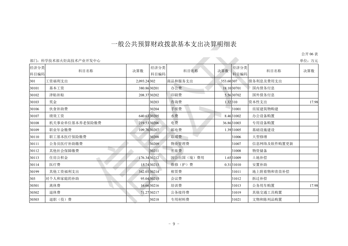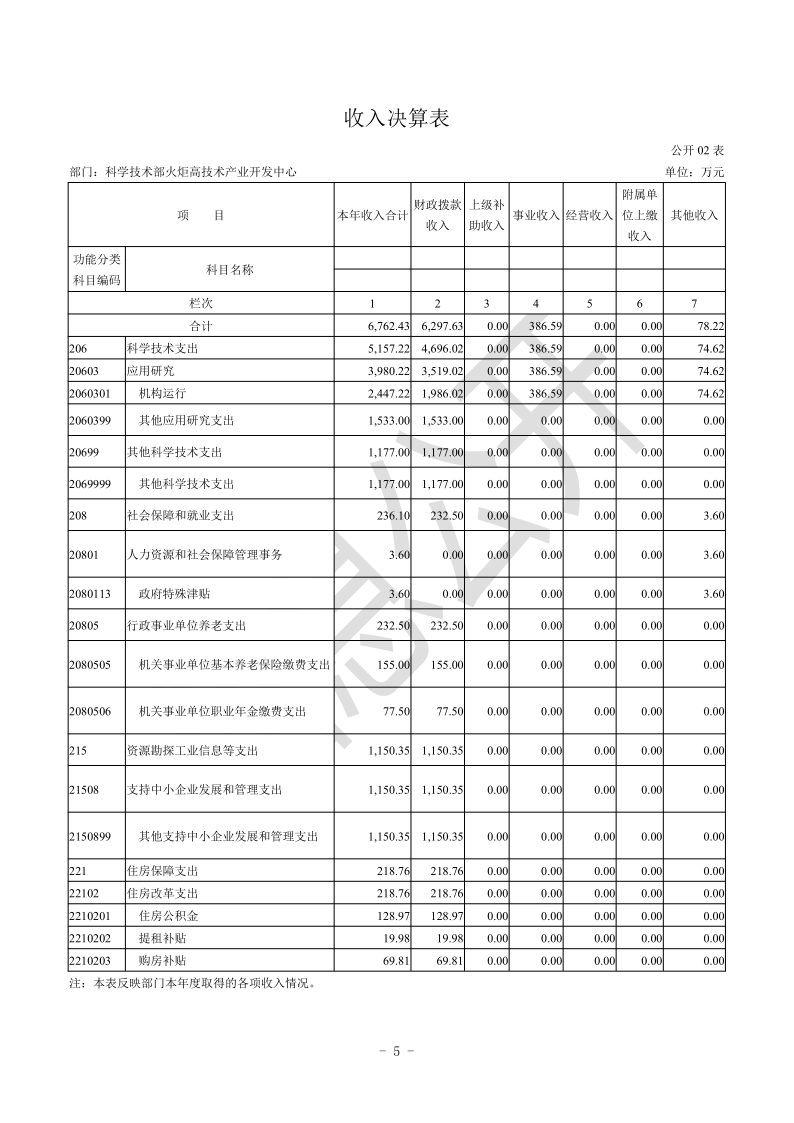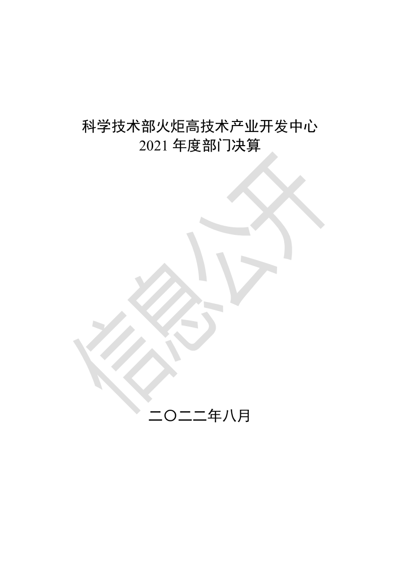 科學(xué)技術(shù)部火炬高技術(shù)產(chǎn)業(yè)開發(fā)中心2021年度部門決算